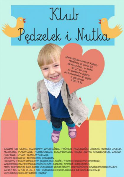 Zapraszamy do Staromiejskie Centrum Kultury Młodzieży przy ul. Dietla 53 dzieci w wieku od 2,5 do 5 lat na fantastyczne, wesołe, kolorowe zajęcia! Śpiewamy, gramy, rysujemy i bawimy się – nie przestajemy się cieszyć z tego, że jesteśmy razem.