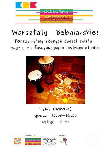 Warsztaty bębiarskie to zajęcia, podczas których nie tylko można nauczyć się grania afrykańskich rytmów na bębnach typu djembe, ale również zapoznać się z innymi instrumentami pochodzącymi z odległych części świata, tj. kalimba, drumla, flet irlandzki, flet brazylijski, małe instrumenty perkusyjne i inne.