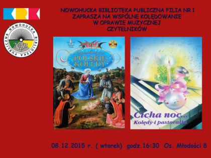 Czytelnicy i przyjaciele Biblioteki spotkają się, aby razem kolędować, wprowadzając się w świąteczny nastrój. Wspólnym śpiewom, towarzyszyć będzie muzyka instrumentalna wykonywana na żywo przez czytelników – muzyków amatorów.