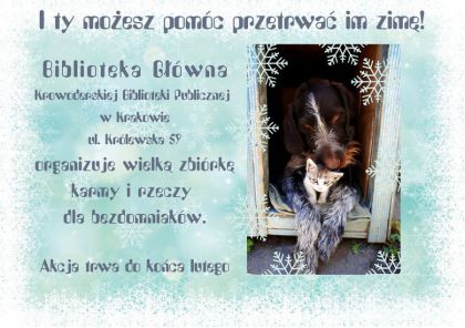 Bezdomnych psów i kotów w potrzebie jest mnóstwo, a wielu z nas - ludzi dobrej woli często zastanawia się, w jaki sposób można im pomóc. Otóż najwspanialszą formą pomocy jest oczywiście adopcja, jeśli jednak z jakiś powodów nie możesz adoptować zwierzęcia zapraszamy Cię do naszej biblioteki, gdzie możesz zostawić coś dla bezdomniaków, a my przekażemy to dalej. Każda pomoc rzeczowa często jest wielkim darem dla naszych bezdomnych psów i kotów. Dlatego prosimy, zastanówcie się czy możecie pomóc.
