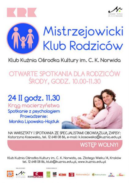 Klub Rodziców w Klubie Kuźnia zrealizowany dzięki wsparciu Biura Pełnomocnika PMK ds. Rodziny oraz Gminy Miejskiej Kraków.