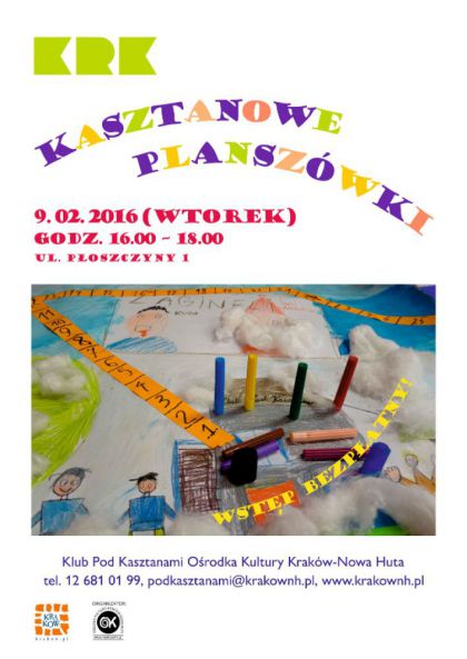 Klub Pod Kasztanami Ośrodka Kultury Kraków-Nowa Huta (ul. Płoszczyny 1) zaprasza na kolejne planszówkowe spotkanie, które odbędzie się 9 lutego w godz. 16.00-18.00.