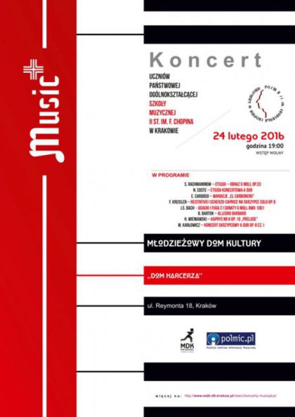 Serdecznie zapraszamy na kolejny z cyklu koncertów organizowanych w MDK „Dom Harcerza”, ul. W. Reymonta 18.