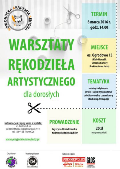 Warsztaty poprowadzi stały współpracownik Nowohuckiej Akademii Seniora – Krystyna Drożdżowska, twórca rękodzieła i jubiler.