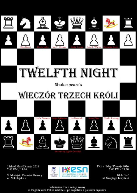 Dlatego serdecznie zapraszamy na spektakl "Wieczór Trzech Króli" ("Twelfth Night") - historię miłosnego trójkąta (czworokąta? Pięciokąta? Sześciokąta?...) á rebours.