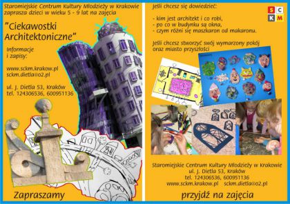 Jeśli chcesz się dowiedzieć: kim jest architekt i co robi, po co w budynku są okna, czym różni się maszkaron od makaronu. Jeśli chcesz stworzyć swój wymarzony pokój oraz miasto przyszłości – Przyjdź na zajęcia.