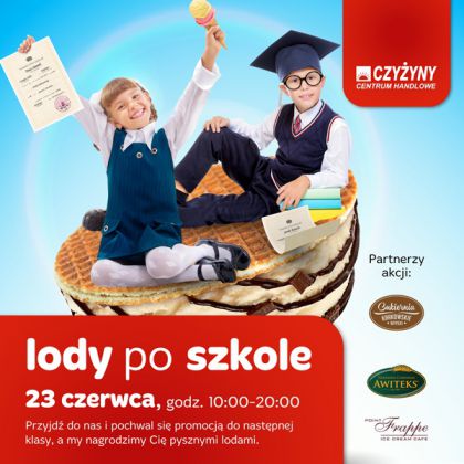 Akcja skierowana jest do uczniów szkół podstawowych, gimnazjów oraz szkół ponadgimnazjalnych, którzy w dniu zakończenia roku szkolnego pojawią się w Centrum Handlowym Czyżyny i okażą aktualne świadectwo szkolne z promocją do następnej klasy lub świadectwo ukończenia danej szkoły. Będą oni mogli odebrać voucher na 2 gałki lodów do zrealizowania w jednym z trzech punktów na terenie centrum handlowego: w Awiteksie, Krakowskich Wypiekach lub Caffe Frappe.