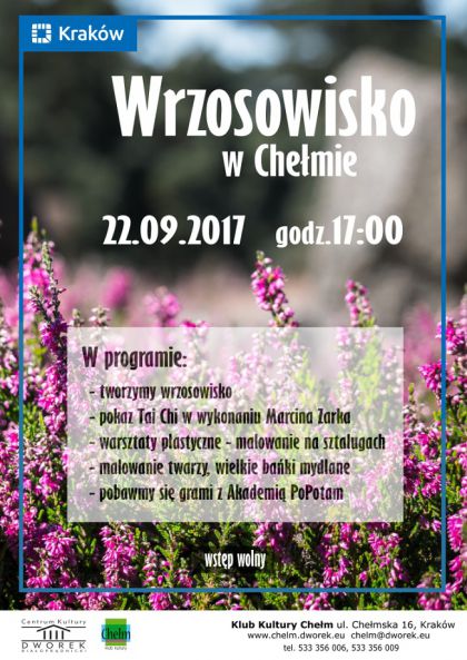 Już wkrótce powitamy jesień odcieniami fioletu. Zapraszamy 22 września o godzinie 17:00 na Wrzosowisko w Chełmie – imprezę dla dużych i małych, na której każdy znajdzie coś dla siebie.