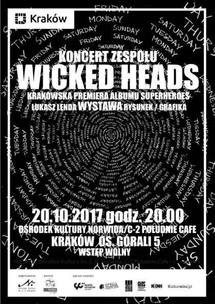 Krakowska premiera debiutanckiej płyty zespołu Wicked Heads pt. „Superheroes”, połączona z wystawą grafik ilustrujących utwory zespołu autorstwa Łukasza Lendy.