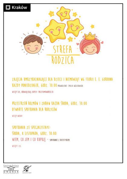 Spotkanie odbywa się w ramach Strefy Rodzica, projektu dofinansowanego przez Miasto Kraków.