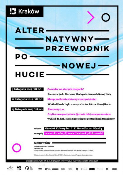 Wykład o dziejach terenów Nowej Huty zilustrowanych na mapach w ramach projektu Alternatywny Przewodnik po Nowej Hucie. Prowadzenie: dr Mariusz Machynia. Wstęp wolny.