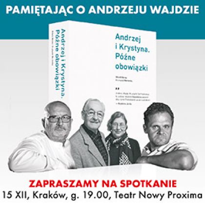 Zapraszamy na spotkanie z cyklu „Pamiętając o Andrzeju Wajdzie”, połączone z prezentacją książki „ANDRZEJ I KRYSTYNA. PÓŹNE OBOWIĄZKI” autorstwa Witolda Beresia i Krzysztofa Burnetko.