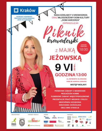 XII edycja „Pikniku Krowoderskiego z Majką Jeżowską” odbędzie się 9 czerwca 2017 roku, na terenie MDK „Dom Harcerza”, ul. Reymonta 18 i części Parku Jordana w godzinach od 13.00 do 19.15.