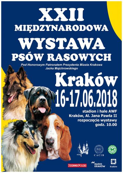 16-17 czerwca 2018: Międzynarodowa Wystawa Psów Rasowych w Krakowie