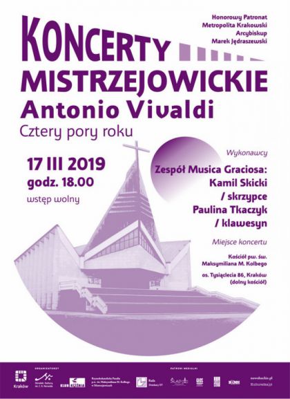 „Cztery pory roku”, w ramach cyklu Koncerty Mistrzejowickie zostaną wykonane w nowatorskiej formie na dwa instrumenty: skrzypce solo i klawesyn w roli orkiestry. Wystąpią znani krakowscy artyści: Kamil Skicki i Paulina Tkaczyk.