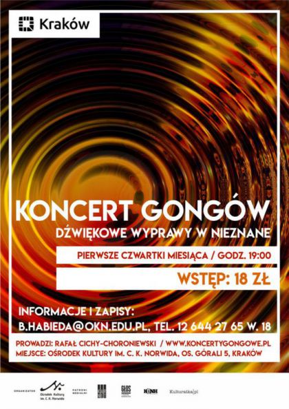 Relaks dla ciała i radość dla duszy to w jednym zdaniu cel udziału w koncercie gongowym. Wrażenia dostarczane słuchaczom przez dźwięki gongu są jedyne w swoim rodzaju, niepowtarzalne i nieporównywalne z niczym innym. Prowadzi Rafał Cichy-Choroniewski / www.koncertygongowe.pl.