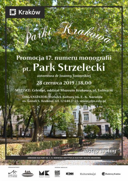 Pracownia Animacji Ekologicznej Ośrodka Kultury im. C. K. Norwida w Krakowie wraz z partnerami serdecznie zapraszają na spotkanie promocyjne 17. numeru monografii z serii „Parki Krakowa” autorstwa dr Joanny Torowskiej, który został poświęcony Parkowi Strzeleckiemu. Wstęp wolny.