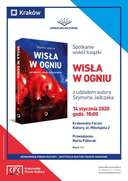 Spotkanie wokół książki-reportażu śledczego „Wisła w ogniu. Jak bandyci ukradli Wisłę Kraków” z udziałem autora Szymona Jadczaka.