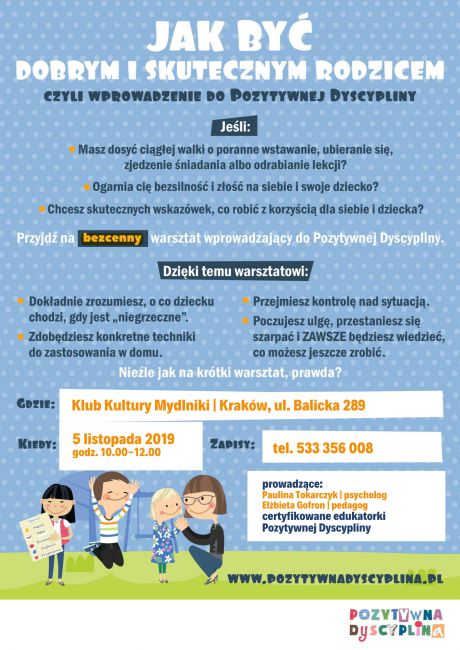 Całodniowe warsztaty z Pozytywnej Dyscypliny w Klubie Kultury Mydlniki