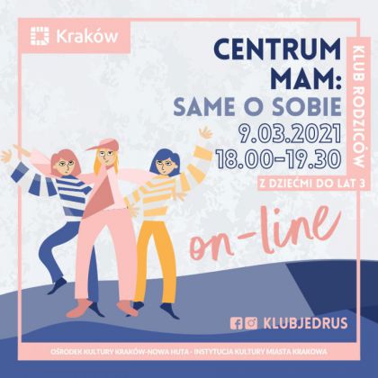 Klub Jędruś Ośrodka Kultury Kraków-Nowa Huta zaprasza do Centrum Mam w Klubie Rodziców. W marcu w Centrum Mam zajmiemy się kobiecością. Co ona właściwie znaczy? Każda z nas poszuka odpowiedzi dla samej siebie i porusza się w rytmie, który przyjdzie w trakcie tych poszukiwań. Jak zawsze działamy, żeby rozprężyć napięcia, obudzić i zrelaksować całe ciało, a przede wszystkim spotkać się ze sobą. Prowadząca: Zofia Noworól-Ostrowska – nauczycielka jogi klasycznej, choreografka, badaczka kultury. Prowadzi zajęcia improwizacji tańca, eksperymentalne działania ruchowe i praktyki zmysłowe. Założycielka Komuczemu - przestrzeni rozwoju osobistego. Szczęśliwa mama. Spotkania odbywają się w zamkniętej grupie Klubu Rodziców na Facebooku.