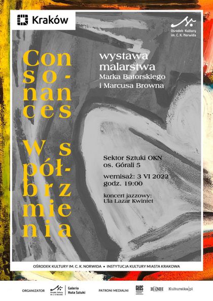 Wystawa „Consonances” – Współbrzmienia to prezentacja twórczości malarskiej dwóch muzyków i malarzy jednocześnie: Marka Batorskiego, krakowskiego saksofonisty, malarza, grafika i profesora wydziału sztuki Uniwersytetu Pedagogicznego w Krakowie oraz Marcusa Browna, nowoorleańskiego muzyka, rzeźbiarza, eksperymentatora, wynalazcy i pedagoga. Obaj artyści tworzą przy muzyce, a ich obrazy malarskie przenika jazz.