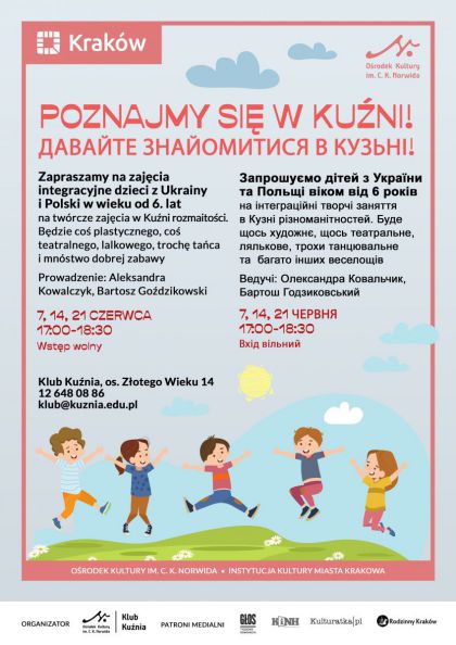 Zapraszamy dzieci z Ukrainy i Polski w wieku od 6 lat na twórcze zajęcia integracyjne w Kuźni rozmaitości. Będzie coś plastycznego, coś teatralnego, lalkowego, trochę tańca i mnóstwo dobrej zabawy.
