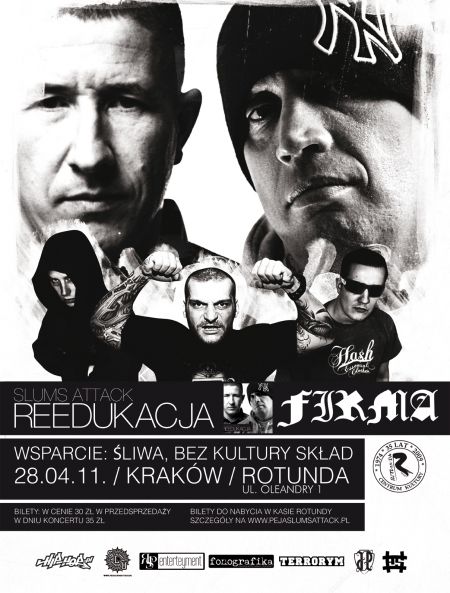 28.04 w krakowskim klubie Rotunda zagra legendarna formacja z Poznania w składzie DJ. Decks i Peja czyli Slums Attack. Promujący najnowszą płytę "Reedukacja", kóra pięć dni po premierze uzyskała status platynowej (debiut na pierwszym miejscu zestawienia OLiS).