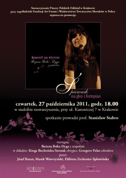 Swoje wiersze odczytają poeci - autorzy wierszy, które znalazły się w śpiewniku.W ramach spotkania będą też ich wypowiedzi na temat związku poezji z muzyką.