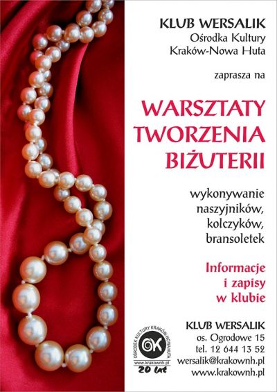 Klub Wersalik Ośrodka Kultury Kraków-Nowa Huta (os. Ogrodowe 15) zaprasza 21 listopada (poniedziałek) 2011 r. o godz. 15.00 na warsztaty tworzenia biżuterii.