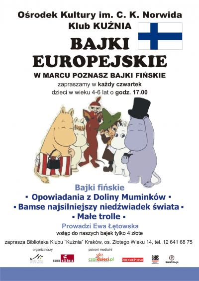 Zapraszamy do Klubu Kuźnia OKN na cotygodniowe spotkania z baśnią i bajką europejską dla dzieci przedszkolnych.
