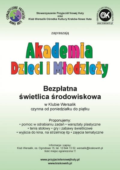 Zapraszają: Klub Wersalik Ośrodka Kultury Kraków-Nowa Huta oraz Stowarzyszenie Przyjaciół Nowej Huty.