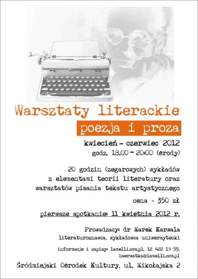 Wszystko to możesz osiągnąć (niezależnie od tego czy jesteś w wieku szkolnym, studenckim czy już dawno osiągnąłeś/osiągnęłaś dojrzałość), biorąc udział w cyklu Warsztatów literackich, które będą miały w przeważającej mierze charakter praktyczny. Wiedza z zakresu poetyki (z elementami teorii literatury) zostanie zaprezentowana w postaci wykładów, zaś uzyskane informacje będą wykorzystywane i weryfikowane podczas samego pisania.