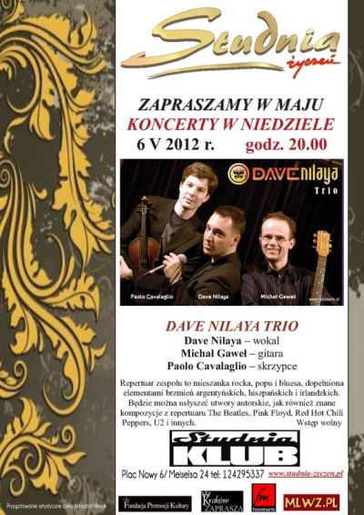 Klub Studnia Życzeń serdecznie zaprasza na koncert włosko-polskiej formacji DAVE NILAYA TRIO, w składzie: