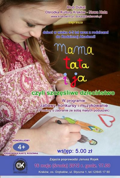 Klub Dukat Ośrodka Kultury Kraków-Nowa Huta (ul. Styczna 1) zaprasza już po raz trzeci do Rodzinnej Akademii na wspólną, kreatywną zabawę.