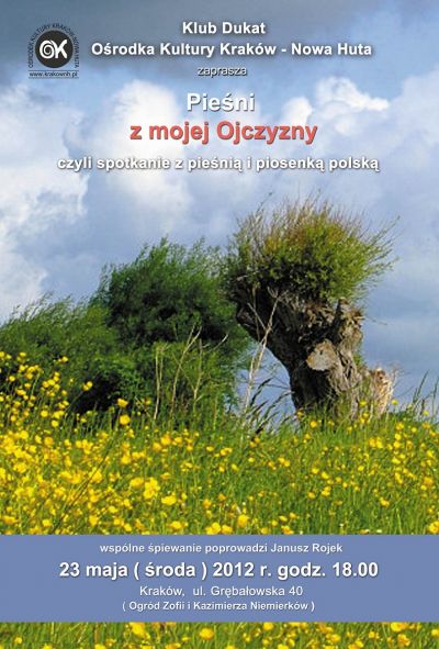 Klub Dukat Ośrodka Kultury Kraków-Nowa Huta (ul. Styczna 1) zaprasza dzieci, młodzież i dorosłych na kolejne spotkanie w ramach Śpiewnika Domowego, które odbędzie się 23 maja br. (środa) o godz. 18.00.