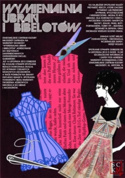 Staromiejskie Centrum Kultury Młodzieży zaprasza na warsztaty ekomody adresowane do wszystkich zainteresowanych odświeżeniem swojej garderoby. Już 14 listopada odbędzie się kolejne otwarte spotkanie będące doskonałą okazją do wymiany ciekawych modowych akcesoriów, a także pomysłów na zmiany swojego image'u. Spotkaniu towarzyszyć będą warsztaty tworzenia ażurowych dekoracji do ubrań i akcesoriów.