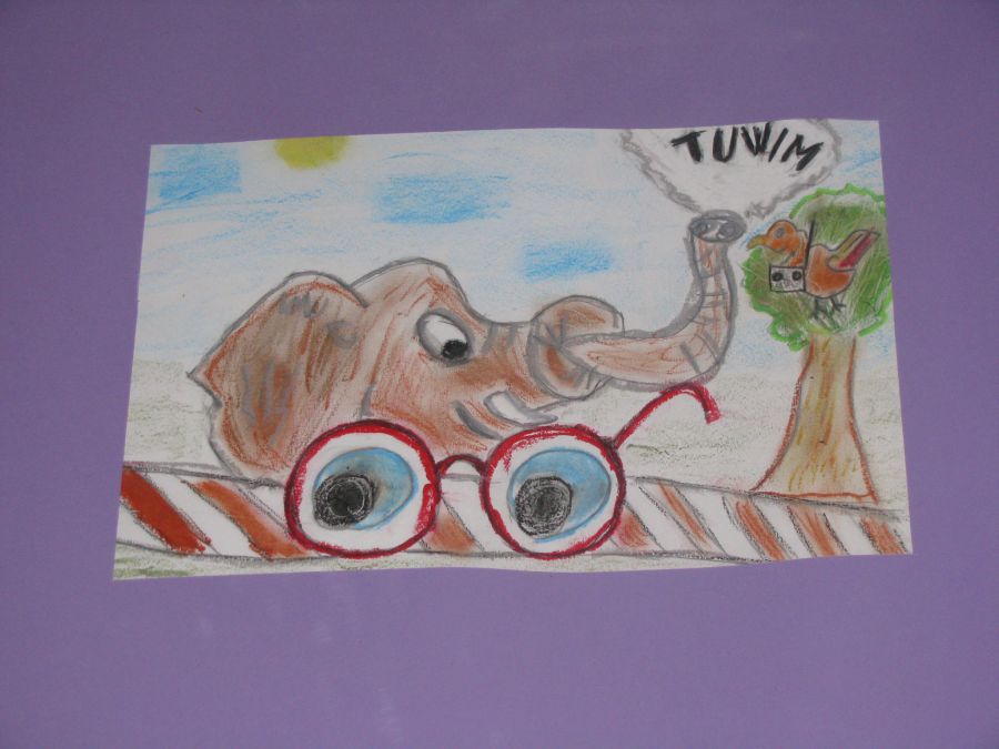 Tuwim na zakładkę do książki - wystawa pokonkursowa prac uczniów uczęszczających do świetlicy szkolnej Zespołu Szkół w Bibicach