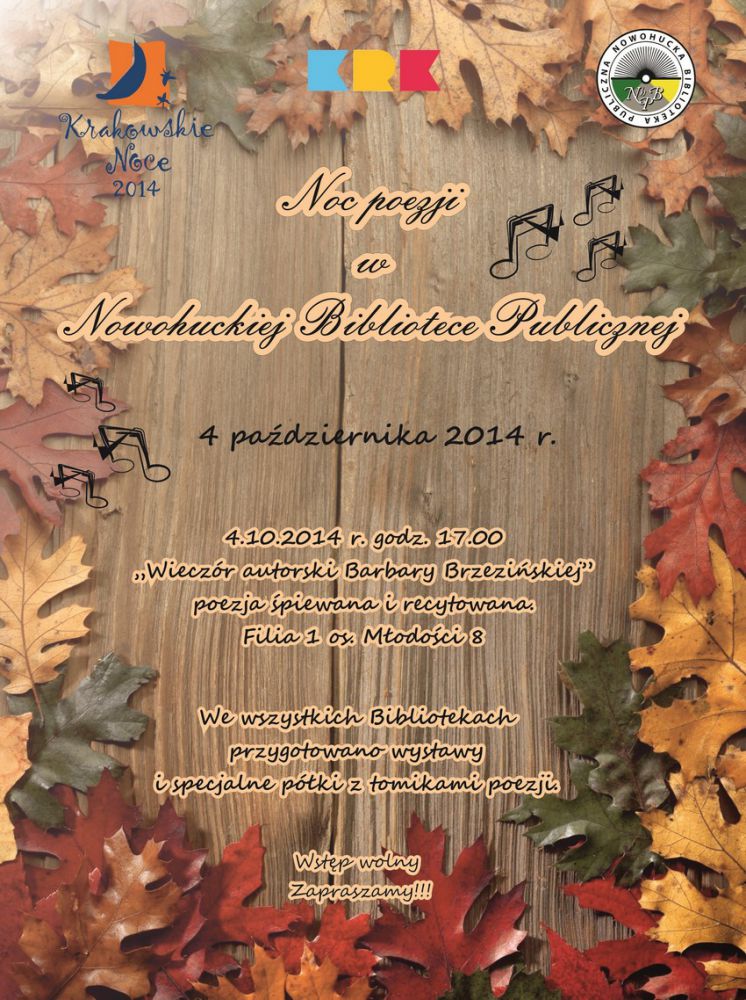 Noc Poezji w Nowohuckiej Bibliotece Publicznej w Krakowie.