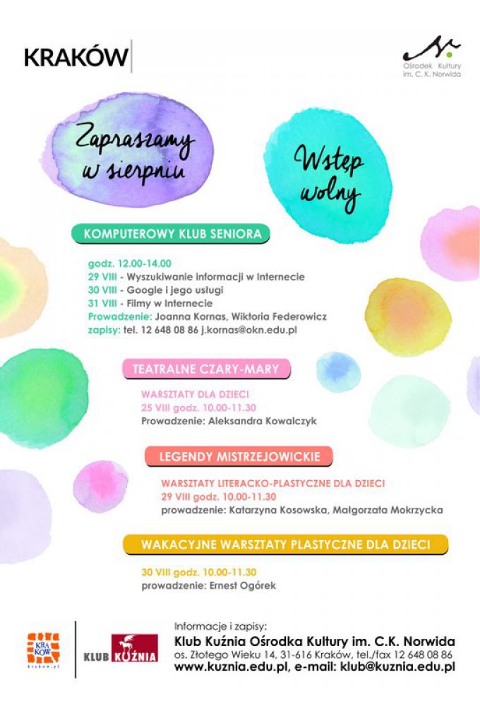Sierpniowe warsztaty dla dzieci w Klubie Kuźnia