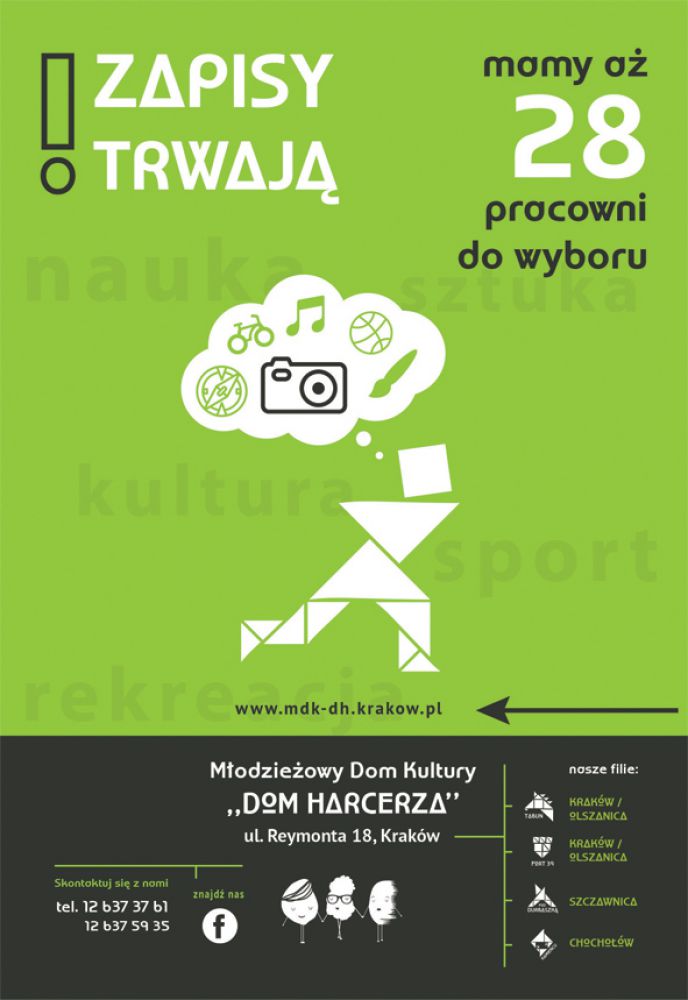 Zapraszamy na zajęcia w Młodzieżowym Domu Kultury „Domu Harcerza”, ul. Reymonta 18