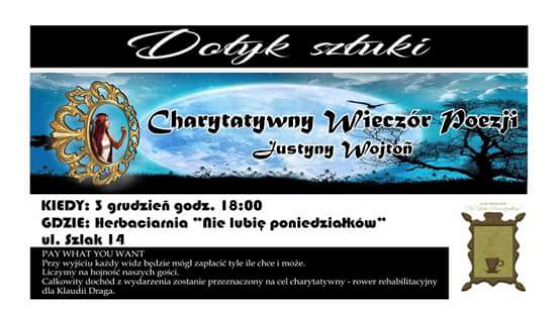 DOTYK SZTUKI - CHARYTATYWNY WIECZÓR POEZJI JUSTYNY WOJTOŃ