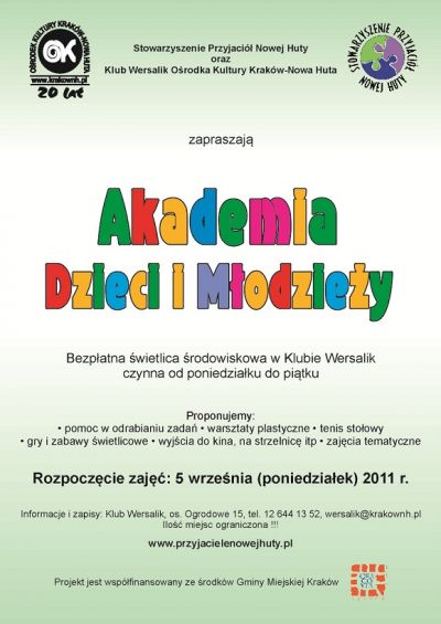 Akademia Dzieci i Młodzieży w Klubie Wersalik Ośrodka Kultury Kraków - Nowa Huta