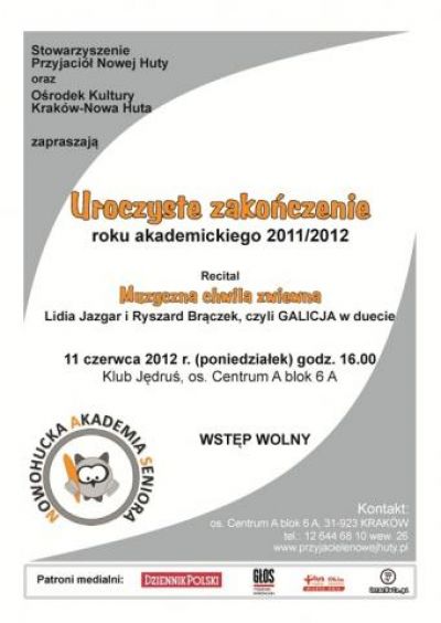 Zakończenie roku w Nowohuckiej Akademii Seniora - koncert Lidii Jazgar