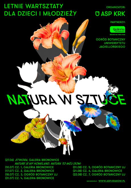 Akademia Sztuk Piknych w Krakowie startuje z cyklem letnich warsztatw Natura w sztuce. ASP we wsppracy z Galeri Bronowice oraz Ogrodem Botanicznym Uniwersytetu Jagielloskiego zaprasza dzieci i modzie do udziau w kreatywnych i artystycznych dziaaniach w naturze i z natur.