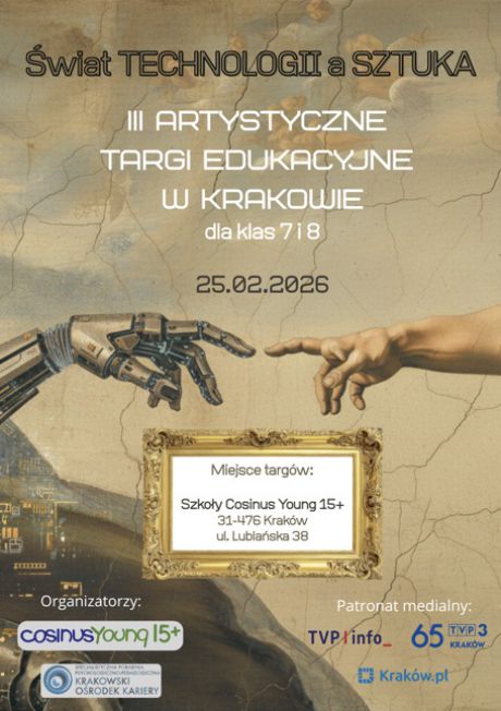 Już po raz trzeci Kraków stanie się przestrzenią spotkania młodych talentów, nowoczesnej edukacji i kreatywnych zawodów przyszłości. W środę, 25 lutego 2026 roku w siedzibie szkół CosinusYoung 15+ przy ul. Lublańskiej 38 (bud. A3), w godz. 10.00-14.00 odbędą się III Artystyczne Targi Edukacyjne – wydarzenie skierowane do uczniów klas siódm (...) |