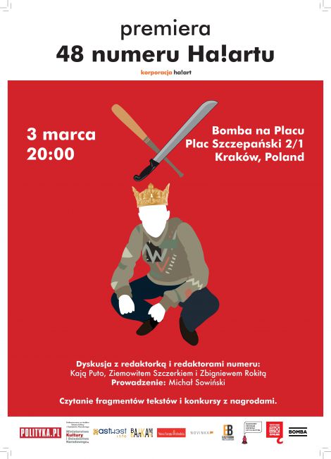 Korporacja Ha!art serdecznie zaprasza na premier 48 numeru "Ha!artu" - "Kelet. Fantomy Europy rodkowo-Wschodniej", ktra odbdzie si o godzinie 20:00 w Bombie na Placu (pl. Szczepaski 2/1, Krakw).