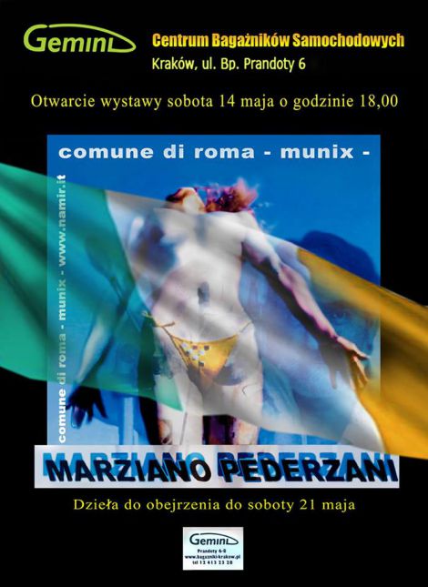 W dniach 14.05 - 21.05.2016 r. w Centrum Baganikw Samochodowych Gemini swoje prace zaprezentuje woski artysta Marziano Pederzani.