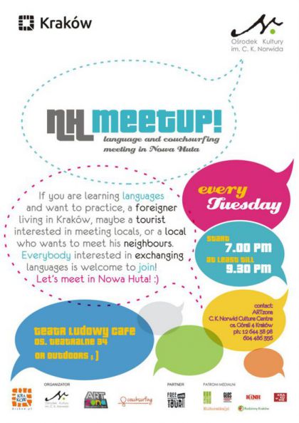 | If you haven't meet us yet, don't hesistate to come. The meeting is a combination of a language and couchsurfing meeting. It is's open for everybody, for tourists, travelers, couchsurfers, and for non-couchsurfers. For those who want to improve their language skills or want to break fear in speaking. The atmosphere is informal, we exchange languages, ideas, stories, knowledge, phone numbers and smiles, chatting over an aromatic cup of coffe or te(...) ... więcej » |