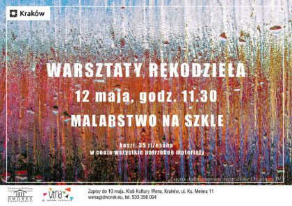 Malarstwo na szkle bdzie tematem majowych warsztatw rkodziea artystycznego, na ktre zapraszamy wszystkich, ktrzy chc sprbowa czego nowego lub powiczy umiejtnoci. Warsztat prowadzi Elbieta Kuniar. Udzia 35 z/osoba, wszystkie materiay w cenie.