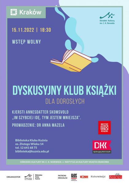 | Dyskusyjny Klub Książki dla dorosłych. Kjersti Annesdatter Skomsvold, „Im szybciej idę, tym jestem mniejsza” |